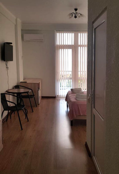 Площадь номера - 20 кв.м. 1 комната. 2 осн. места. В номере: телевизор; холодильник; балкон; кондиционер; душ; туалет; 2-спальная кровать. 1 доп. место: Еврораскладушка - предоставляется по согласованию с отелем.